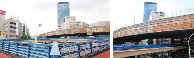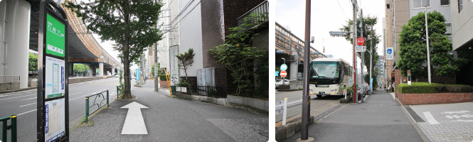 五洋建設のビルが見える方角、高架下の方向に進みます。